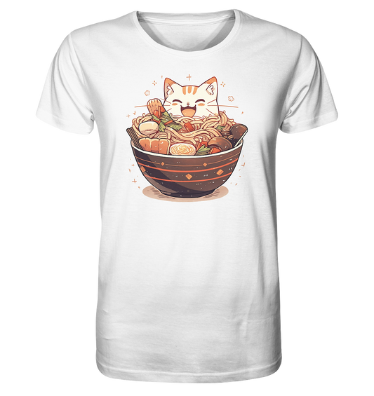 Niedliche Katze in Ramen Schüssel: T-Shirt aus Bio-Baumwolle